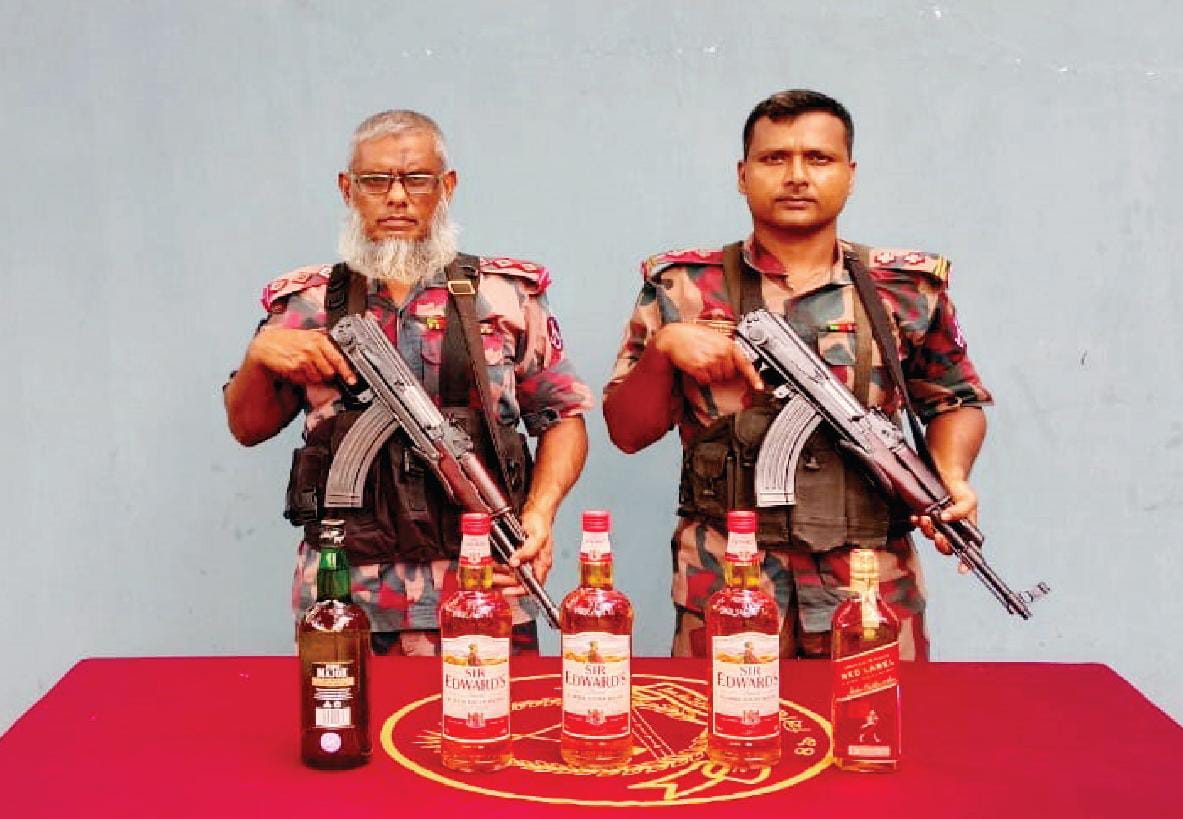 বেনাপোলে বিজিবি’র অভিযানে বিদেশী মদসহ লক্ষাধিক টাকার অবৈধ মালামাল আটক