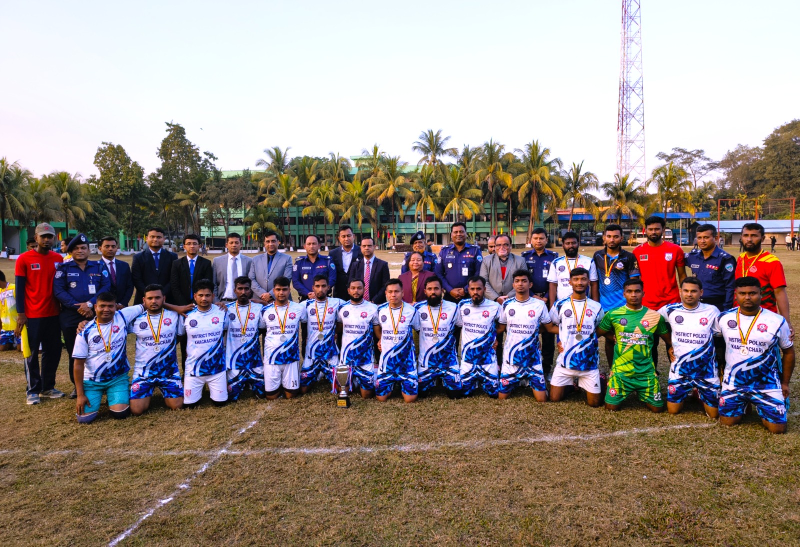খাগড়াছড়িতে জেলা পুলিশের আয়োজনে জমজমাট প্রীতি ফুটবল ম্যাচ