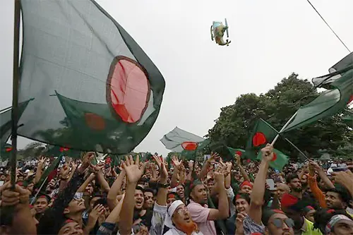 জুলাই গণ-অভ্যুত্থানের বর্ষপূর্তি : প্রতীকী হেলিকপ্টার উড়িয়ে শেখ হাসিনার ‘পলায়ন ক্ষণ’ উদযাপন