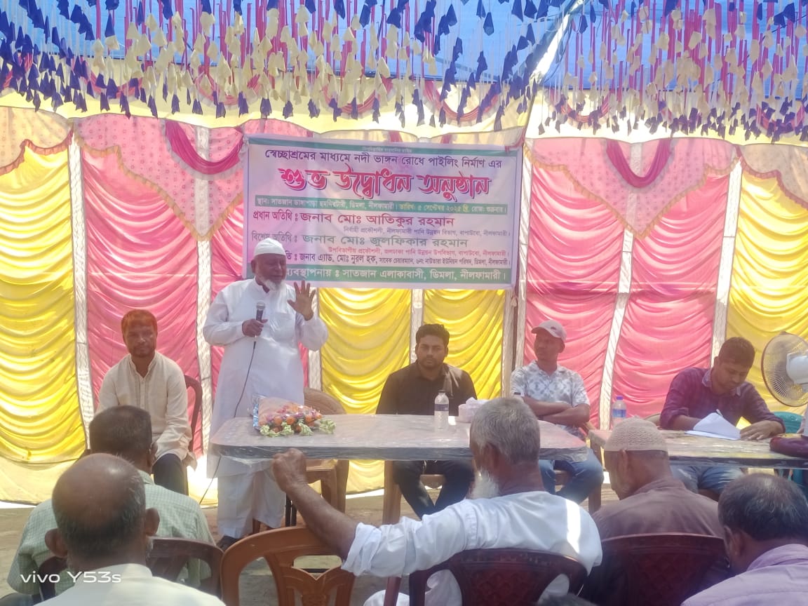 ডিমলায় বুড়ি নদীর ভাঙন রোধে এলাকাবাসী ও পানি উন্নয়ন বোর্ডের সহযোগিতায় পাইলিং নির্মাণের শুভ উদ্বোধন