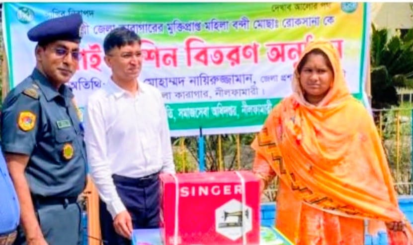 নীলফামারী জেলা কারাগারে সাজা ভোগ শেষে জেলা প্রশাসকের সেলাই মেশিন উপহার