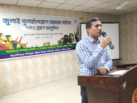 শালিখা মাগুরা প্রতিনিধিঃ শালিখায় ২৬ জুলাই সারাদেশের ন্যায় “জুলাই পুনর্জগরণে সমাজ গঠনে শপথ গ্রহণ অনুষ্ঠান” অনুষ্ঠিত হয়েছে। উপজেলা পরিষদ মিলনায়তনে