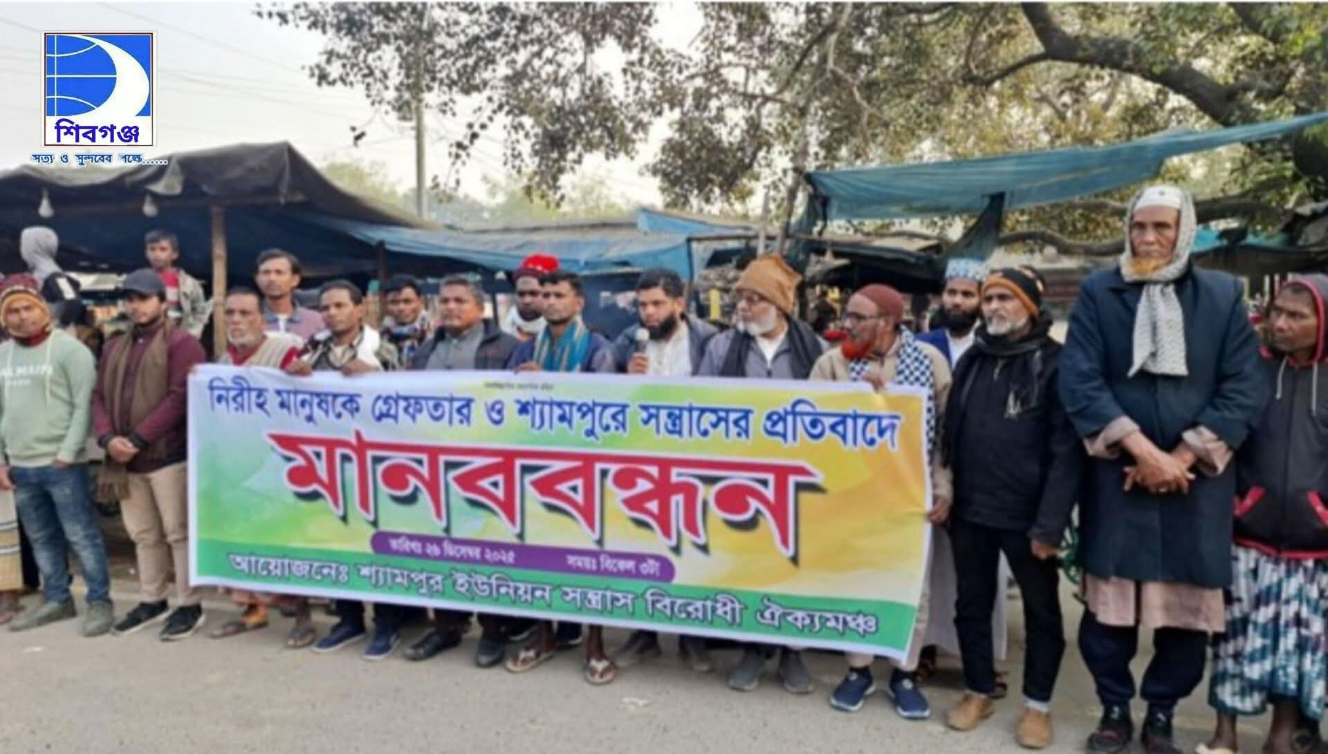 শ্যামপুরে সন্ত্রাসীদের গ্রেফতার ও নিরপরাধদের মুক্তির দাবিতে মানববন্ধন