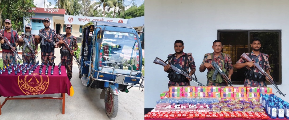 যশোর সীমান্তে বিজিবির অভিযানে মদ ফেন্সিডিলসহ সাড়ে তিন লক্ষ টাকার অবৈধ মালামাল জব্দ