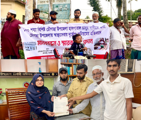 চৌগাছায় ১০০ শয্যা বিশিষ্ট হাসপাতাল চালুর দাবীতে এবি পার্টির মানববন্ধন ও স্মারকলিপি প্রদান