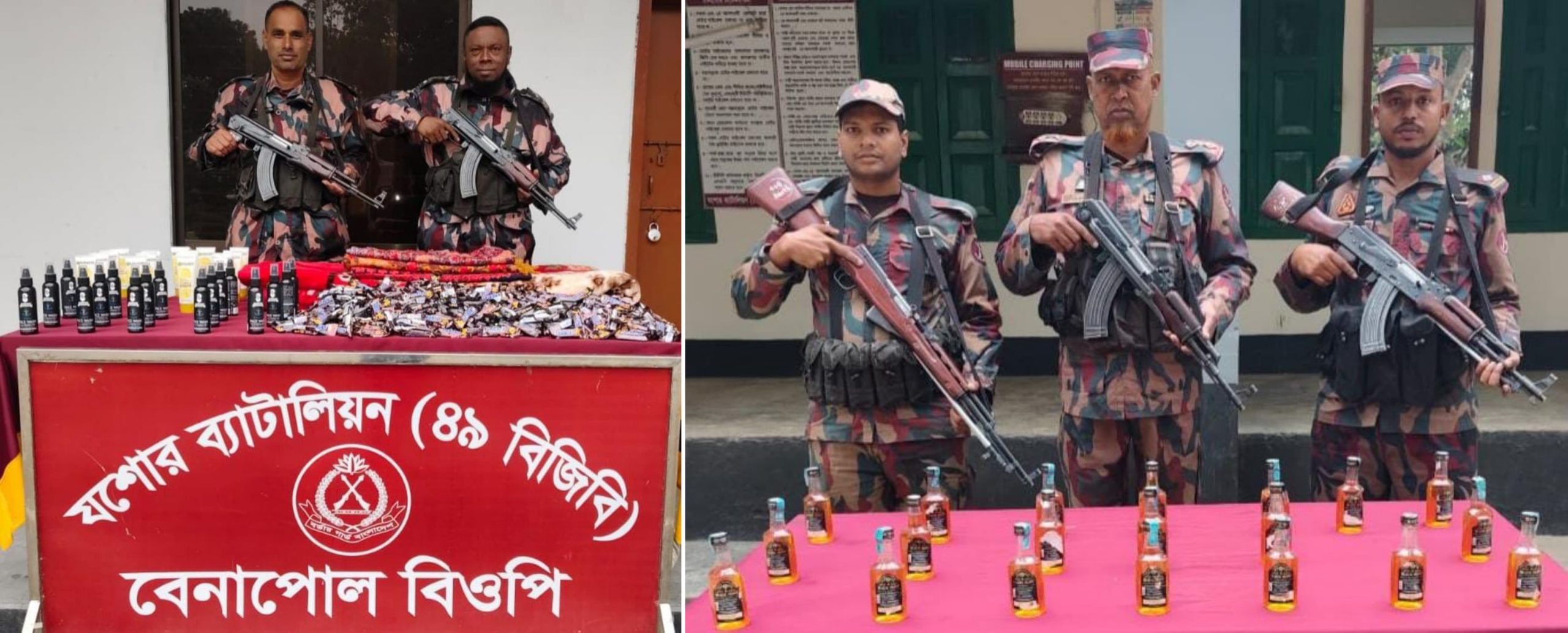 সীমান্তে বিজিবি’র অভিযানে বিদেশি মদসহ চোরাচালান পণ্য জব্দ