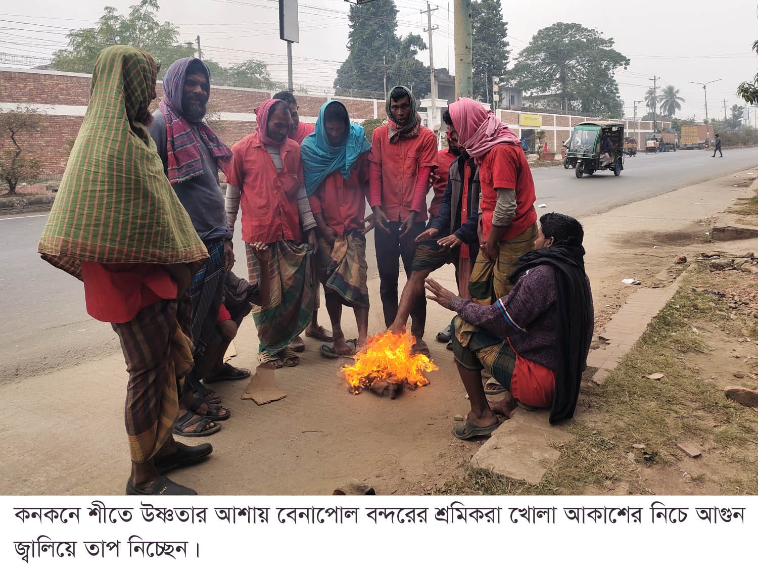 কনকনে শীতে বিপর্যস্ত জনজীবন “বেনাপোল বন্দরের শ্রমিকদের উষ্ণতার একমাত্র ভরসা খোলা আগুন”